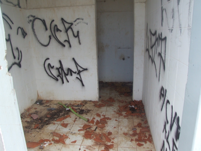 Banheiros estão sujos, sem pias e vasos e pichados“Eu tenho medo de passar por aqui à noite. Tem muito malandro, e já houve até estupro lá dentro” diz a estudante Karilândia Alves. A jovem afirma